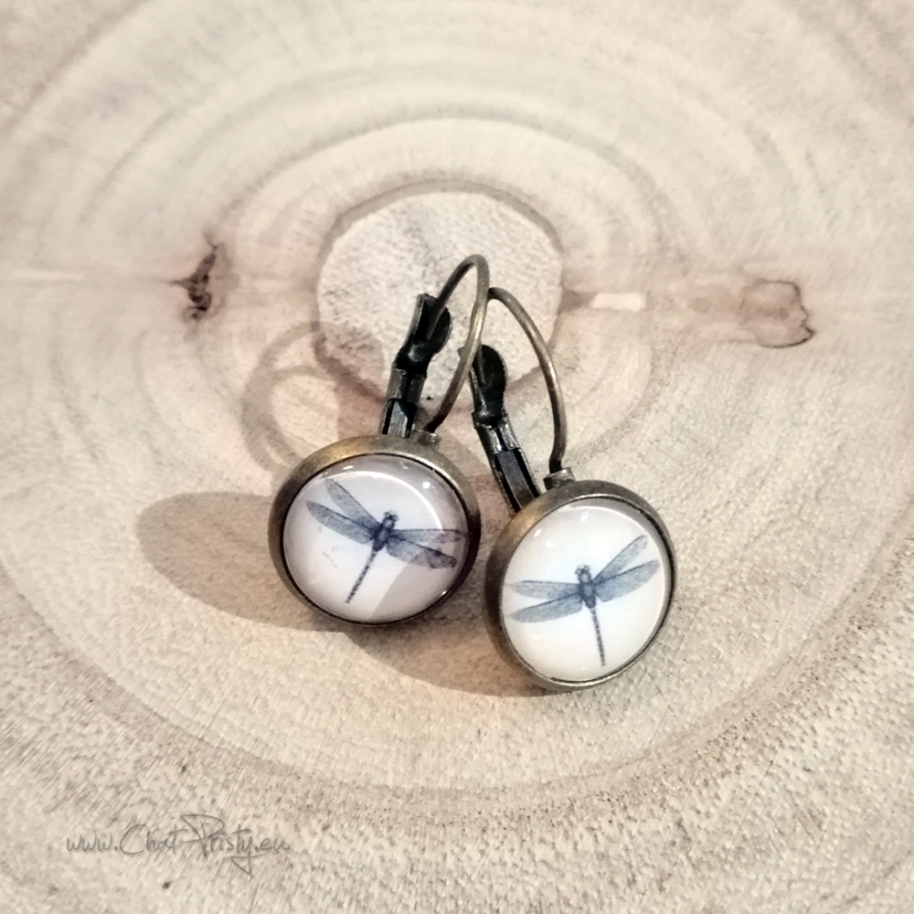 Ces boucles d’oreilles libellule sont nées d’une rencontre entre dessin, poésie et artisanat. Chaque cabochon en verre bombé abrite une illustration originale de libellule noire sur fond ivoire, réalisée à la plume puis mise en lumière dans notre atelier.