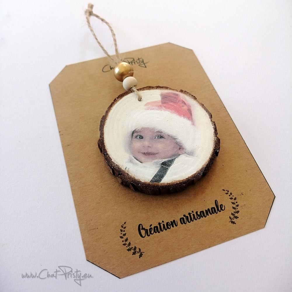 Nouveau Suspension de Noël personnalisée avec portrait d’enfant imprimé sur bois rond, création artisanale Chat Pristy Agrandir