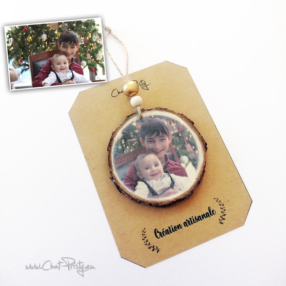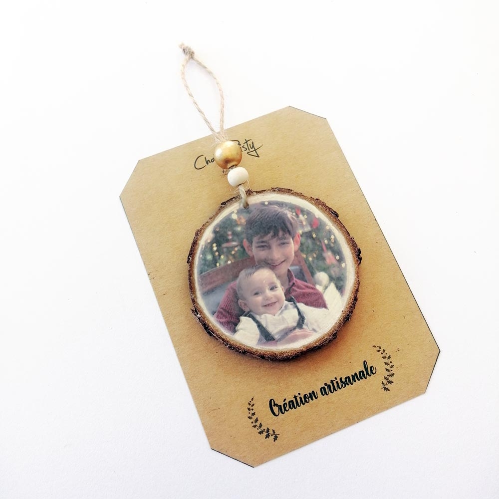 Transformez votre photo de famille en une suspension artisanale à accrocher. Un souvenir unique à offrir ou à conserver, avec un message personnalisé au dos.