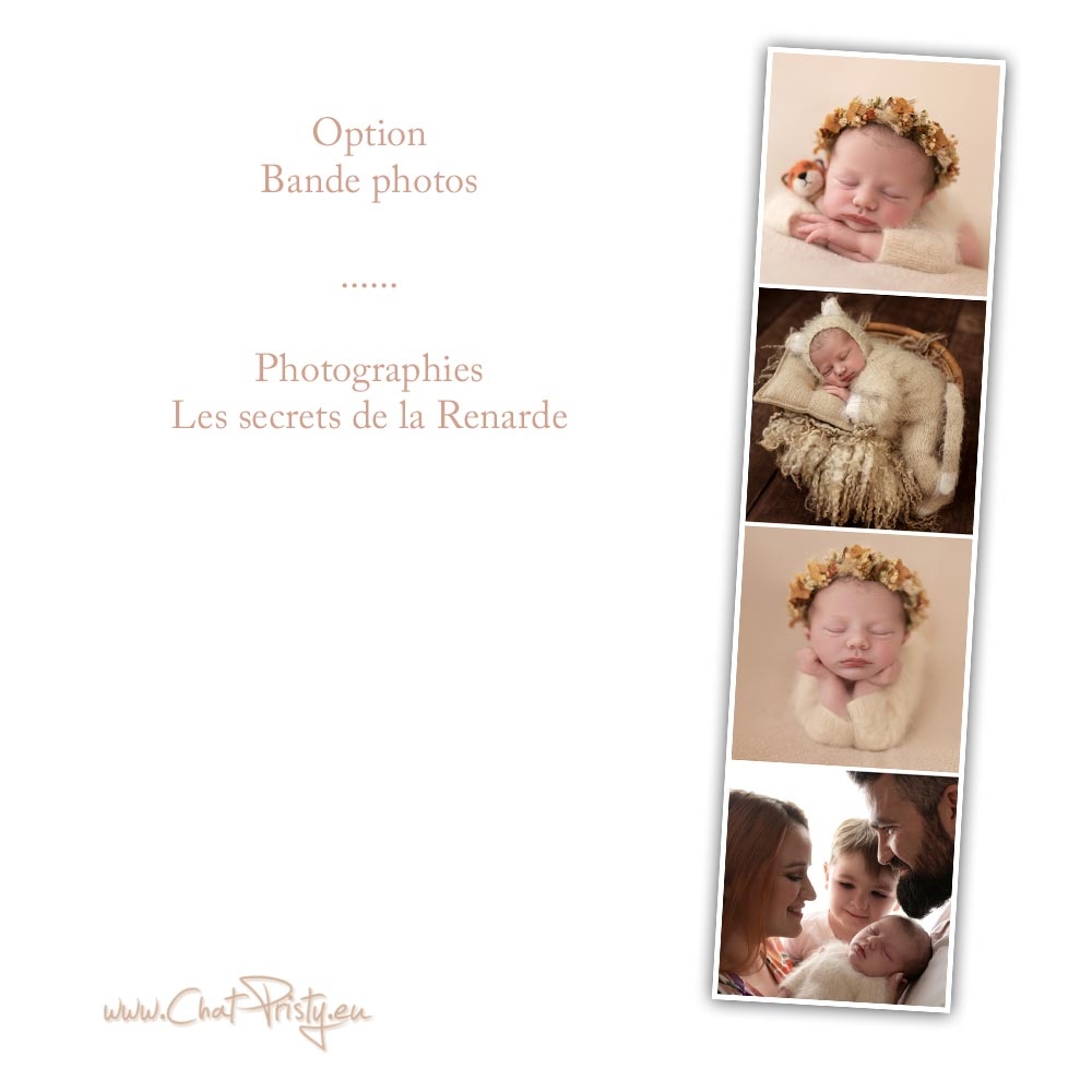 Prix unitaire ici indiqué pour une quantité de 20 faire-parts sans étiquette ni bande photomaton. Tarif dégressif selon la quantité.