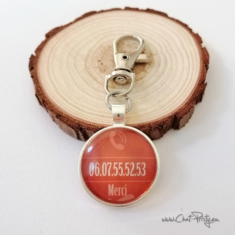 Porte-clé anti-perte personnalisé avec votre numéro de téléphone, pensé pour retrouver vos clés plus facilement.